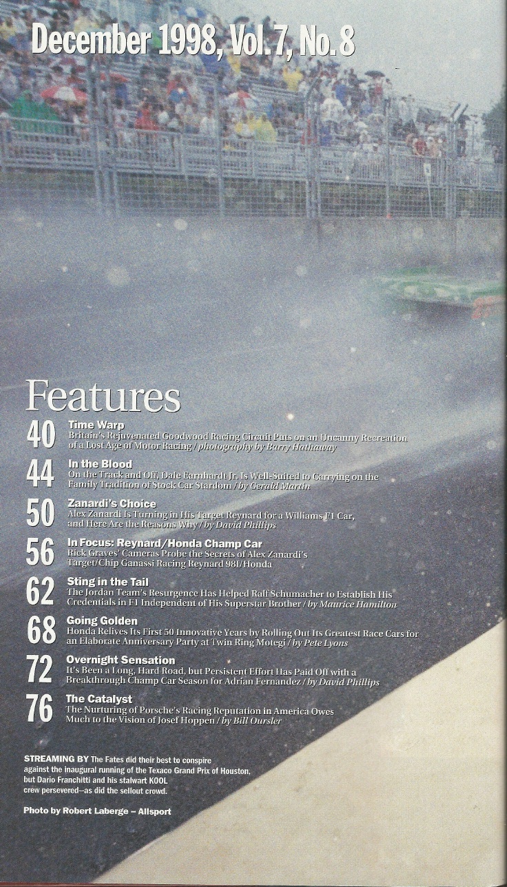 Reviews RACER MAGAZINE 1998 DEC - RALF SCHUMACHER, DALE E, REYNARD 98I-HONDA, GOODWOOD