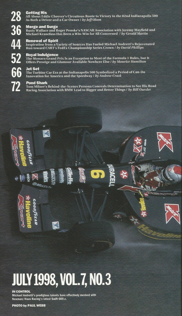 Reviews RACER MAGAZINE 1998 JULY - MIKE ANDRETTI, LOTUS 56 TURBINE, CHEEVER, MILNER
