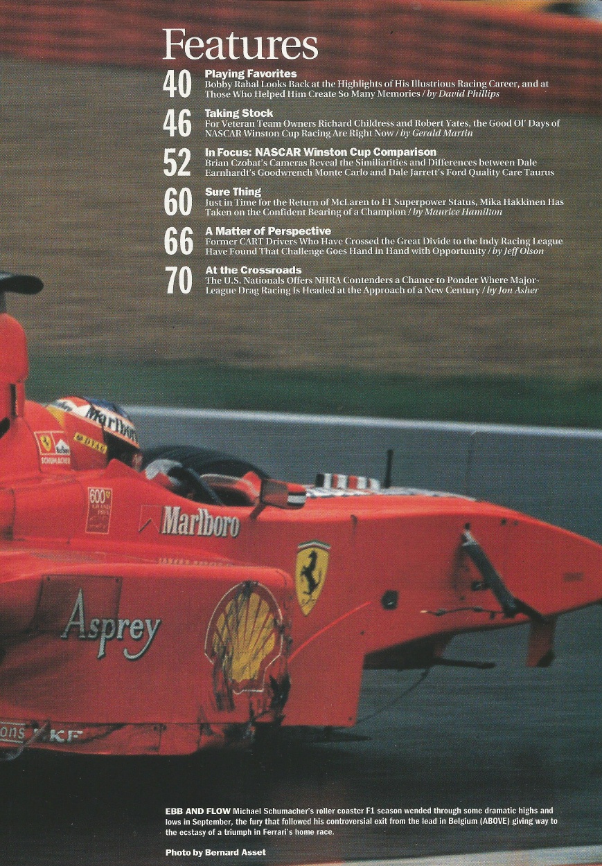 Reviews RACER MAGAZINE 1998 NOV - NASCAR FORD vs CHEVY, HAKKINEN, RAHALs GREATEST