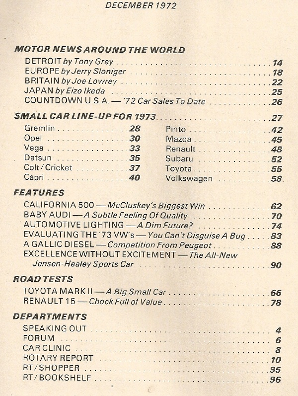 Reviews ROAD TEST MAGAZINE 1972 DEC - NEW SMALL CARS, JENSEN-HEALEY, CALIFORNIA 500
