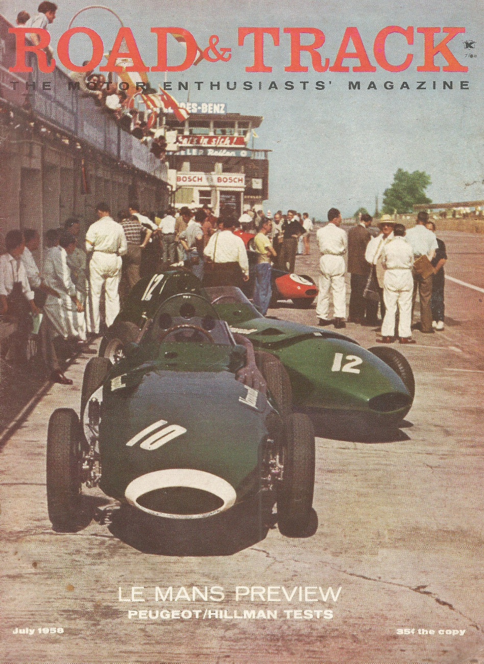 ROAD & TRACK 1958 JULY - HISTORY OF MASERATI . The cover picture is of the Vanwall F1 cars at Nurburg Ring, 1957 Within this issue you will discover the following topics: 1) LeMans, then & now 2) Remembering the 1931 Bugatti Type 50-S 3) 4) The Alfa Romeo 2000 sedan 5) A Sebring sequel 6) The sweet OSCA Sebring Index winner 7) Testing the Hillman Husky & Special 8) The John Mays Fibersport 9) A great history of Maserati 10) Testing the Peugeot 403 A many more automobile features, hundreds of vintage ads and a used car section with prices that will bring tears to your eyes. |