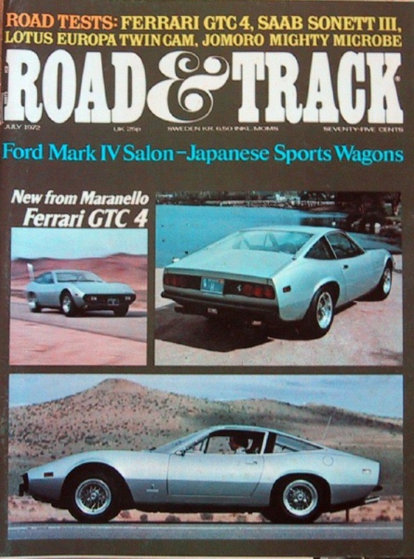ROAD & TRACK 1972 JULY - SONETT 3, EURPOA DOHC, GTC4
