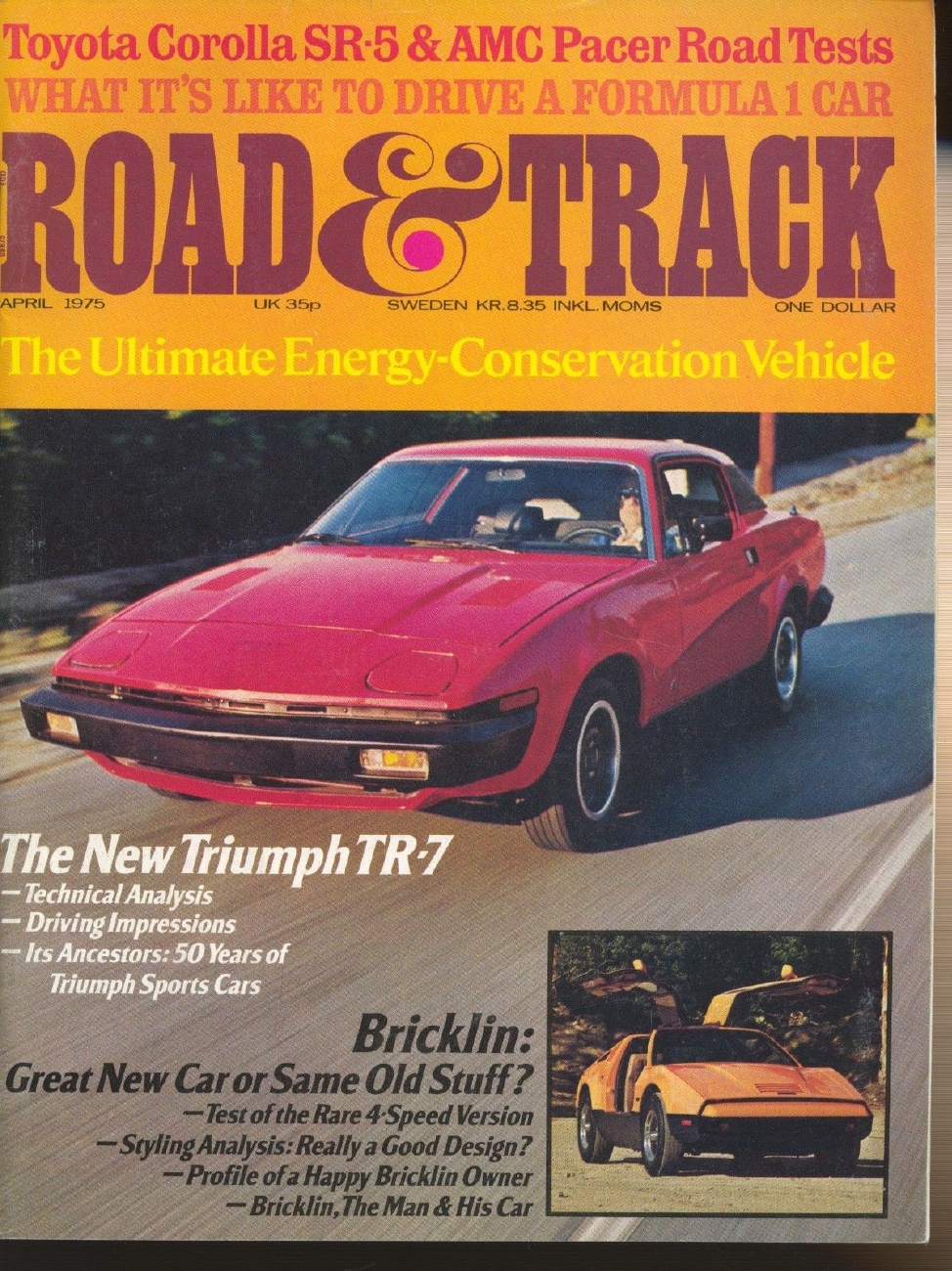 Reviews ROAD & TRACK 1975 APR - TRIUMPH TR-7, BRICKLIN SV-1
