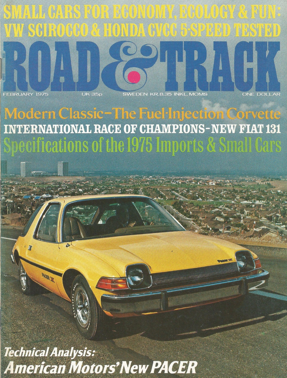 ROAD & TRACK 1975 FEB - STING RAYS, PACER, SCIROCCO