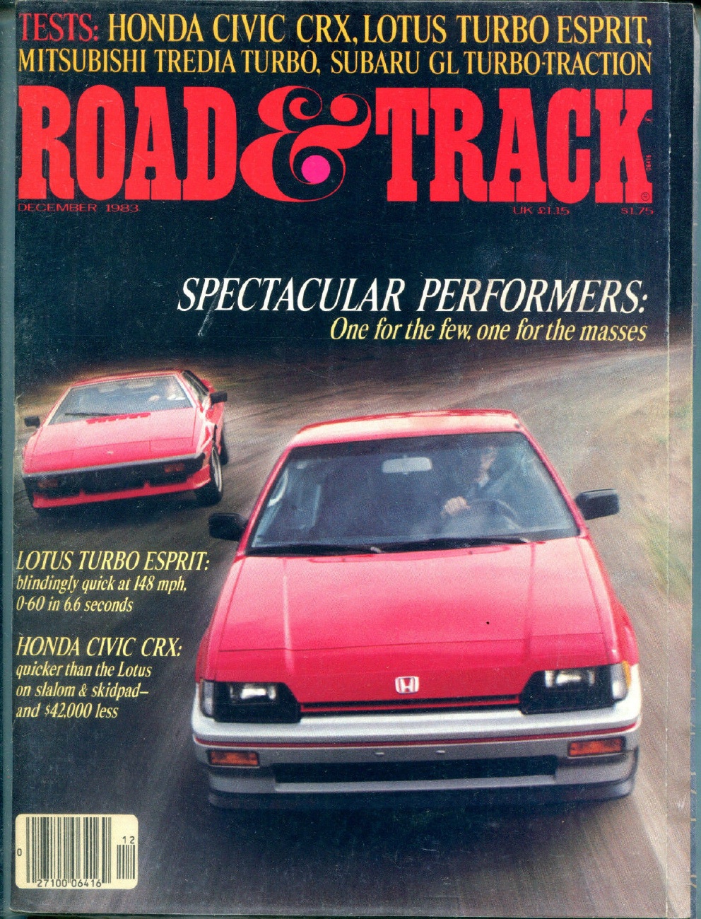 Reviews ROAD & TRACK 1983 DEC - ESPRIT TURBO, HONDA CRX, X1/9