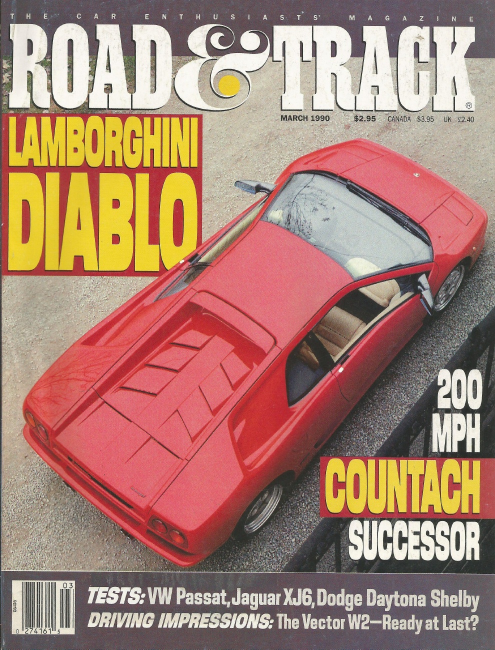 Reviews ROAD & TRACK 1990 MAR - DIABLO, VECTOR W2, SHELBY