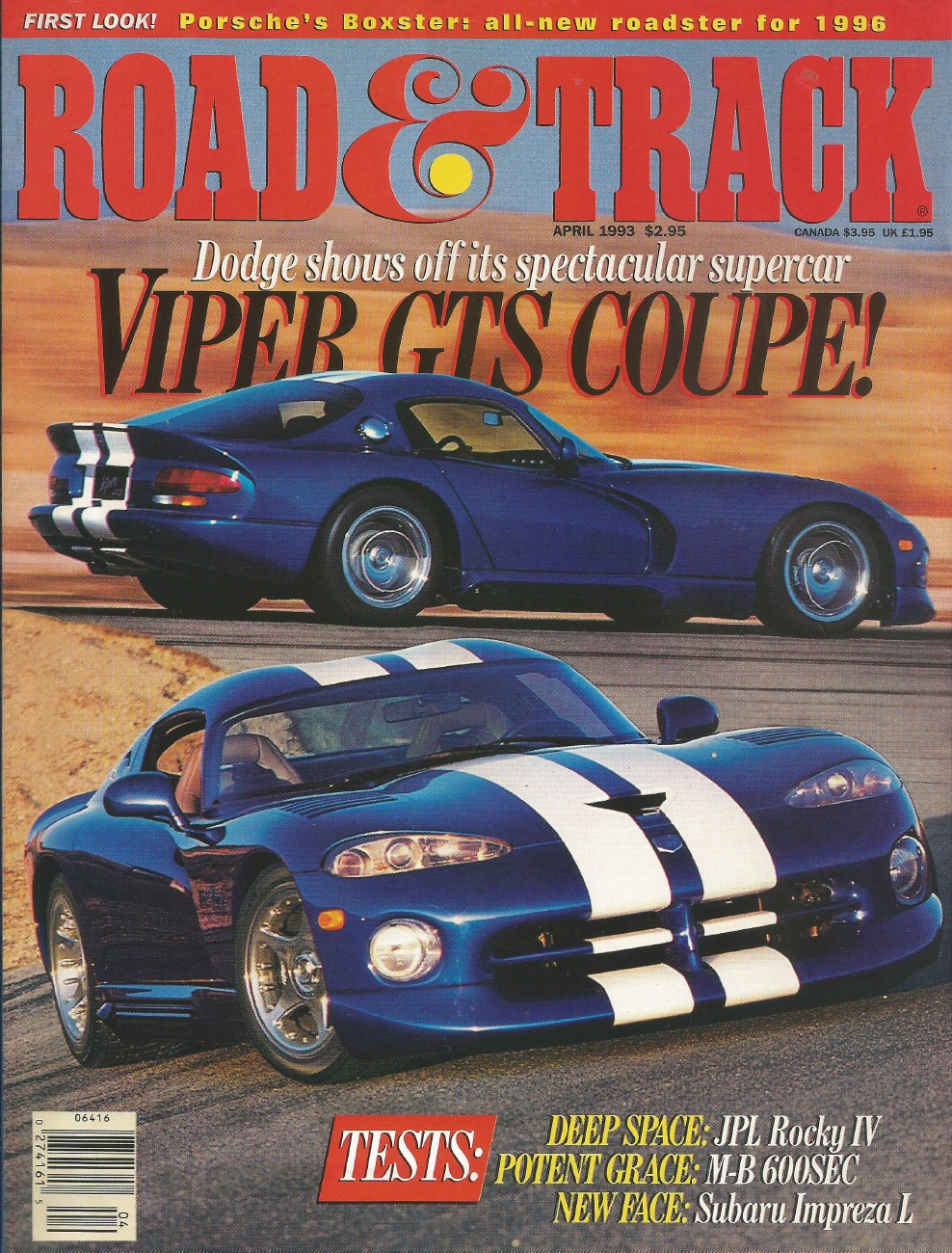 ROAD & TRACK 1993 APR - VIPER GTS COUPE, 986 BOXSTER