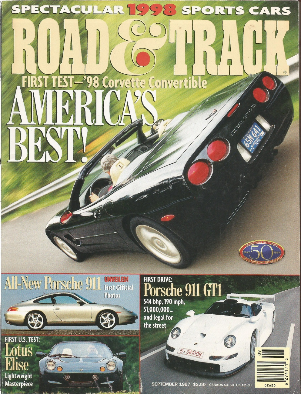 ROAD & TRACK 1997 SEPT - ELISE, LS1 FIREBIRD, 911 GT1