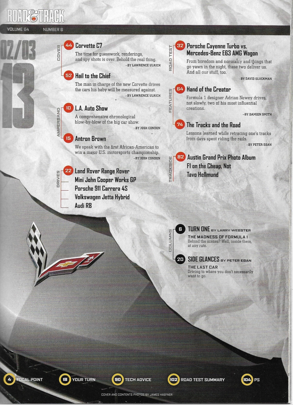 Reviews ROAD & TRACK 2013 FEB/MAR - NEW CORVETTE STINGRAY, PORSCHE SUV vs MERCEDES