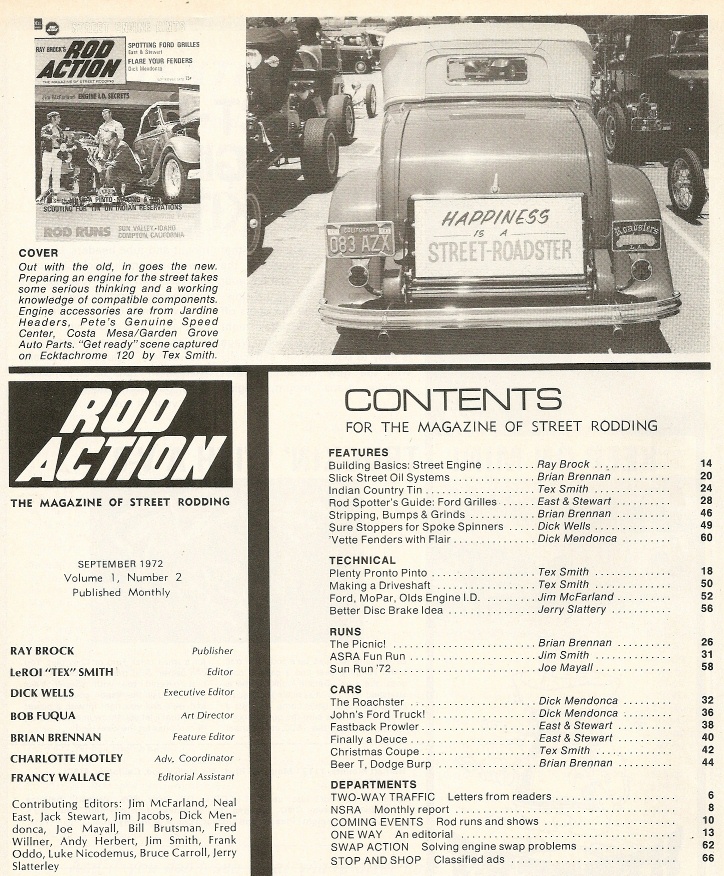 Reviews ROD ACTION 1972 SEPT - Vol 1 #2, V8 PINTO, FORD, MOPAR & OLDS ENGINE IDs*