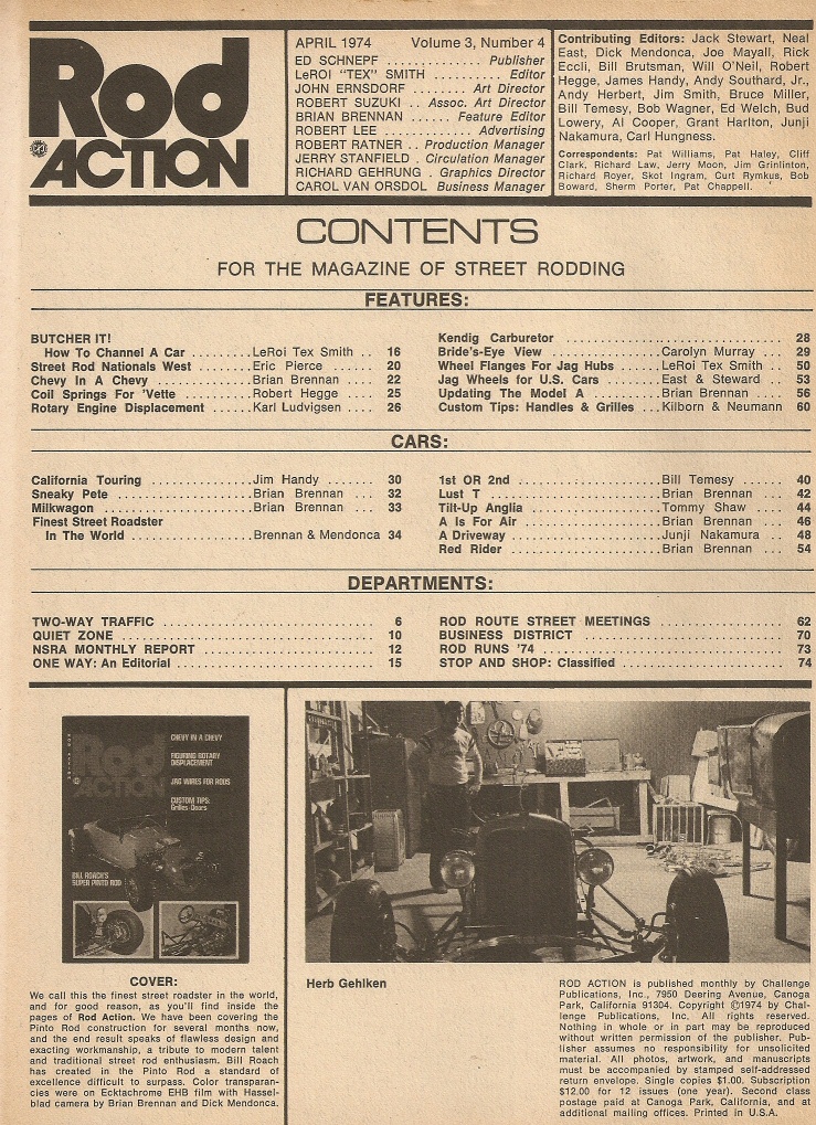 Reviews ROD ACTION 1974 APR - Vol 3 #4, HOW TO CHANNEL, KENDIG CARB, JAG WHEELS