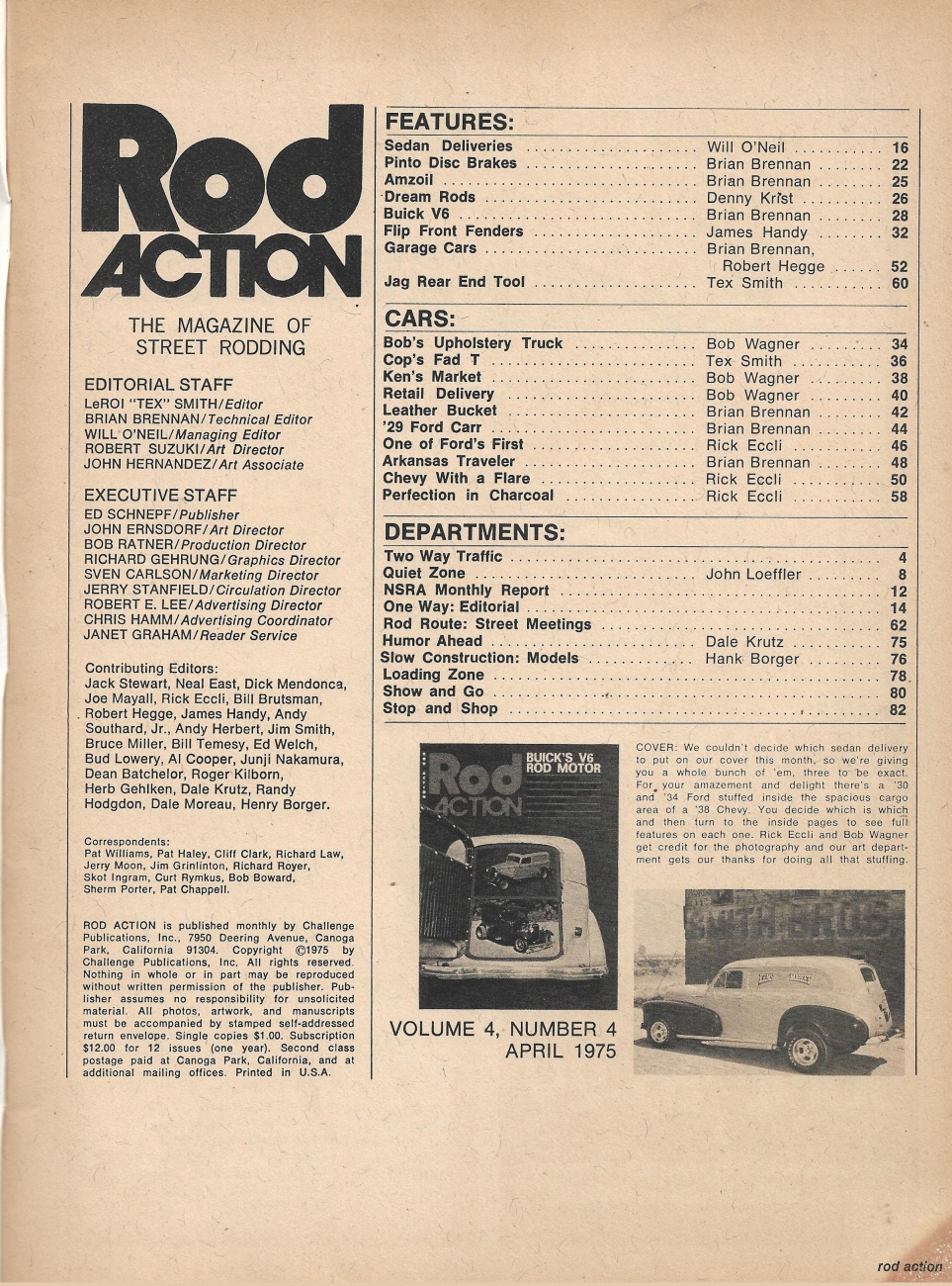 Reviews ROD ACTION 1975 APR - BUICK V6 MOTOR, SEDAN DELIVERIES, TRUCK FLIP FRONTS*