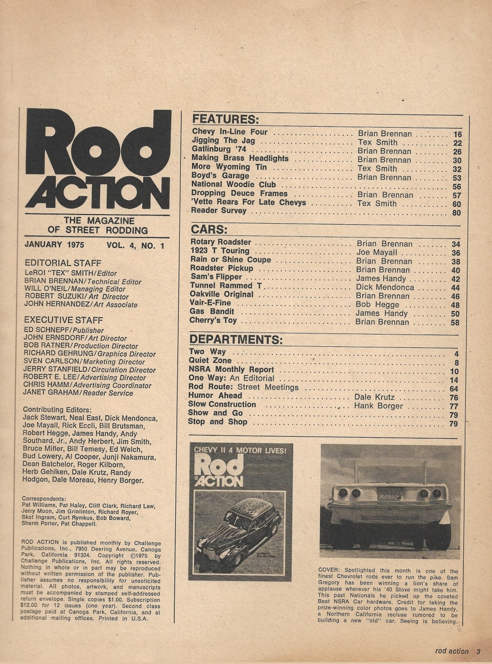 Reviews ROD ACTION 1975 JAN - VETTE IRS IN '57 CHEVY, JAG IFS MOUNTING, DROPPING DEUCES*