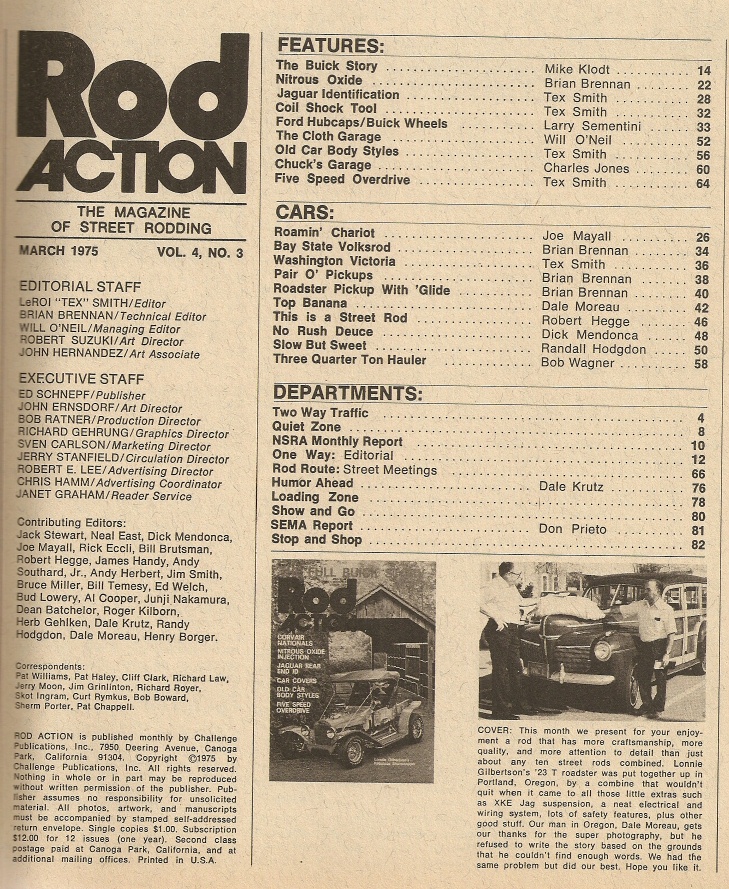Reviews ROD ACTION 1975 MAR - BUICK HISTORY, T50 TRANNY, CORVAIRS, OLD CAR STYLES