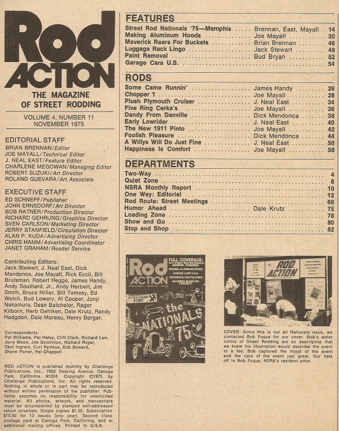 Reviews ROD ACTION 1975 NOV - ALUMINUM HOOD MADE, STREET ROD NATS, MAVERICK REARS