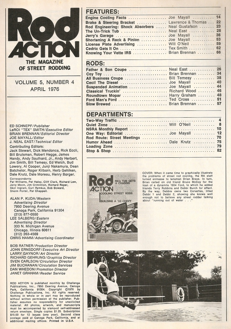 Reviews ROD ACTION 1976 APR - SET UP A VETTE IRS, ROD COOLING, CAPRI RACK-&-PINION