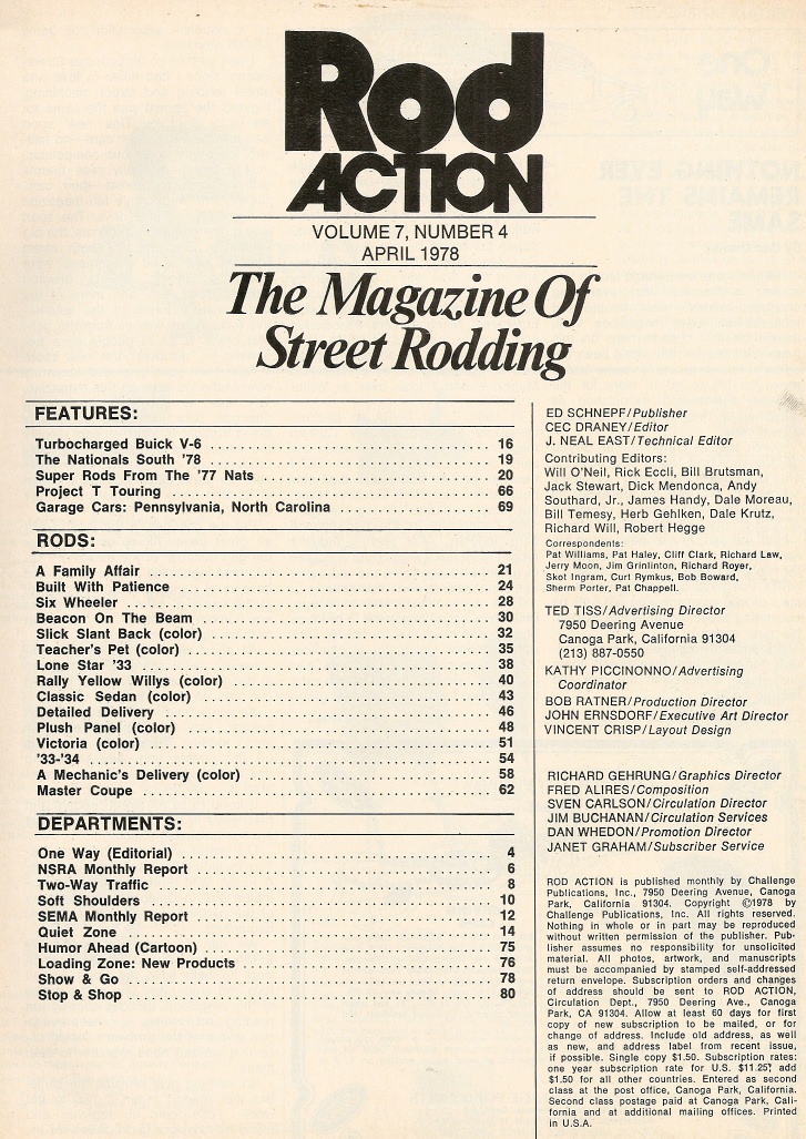 Reviews ROD ACTION 1978 APR - BUICK TURBO V6, RODS FROM THE NATIONALS, SLANT-BACK