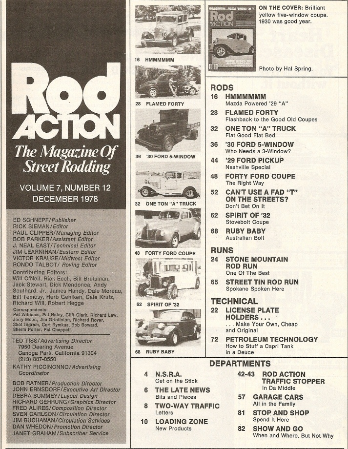 Reviews ROD ACTION 1978 DEC - MAZDA IN A '29 A, '30 A 5-WINDOW TRUCK, PLATE HOLDER