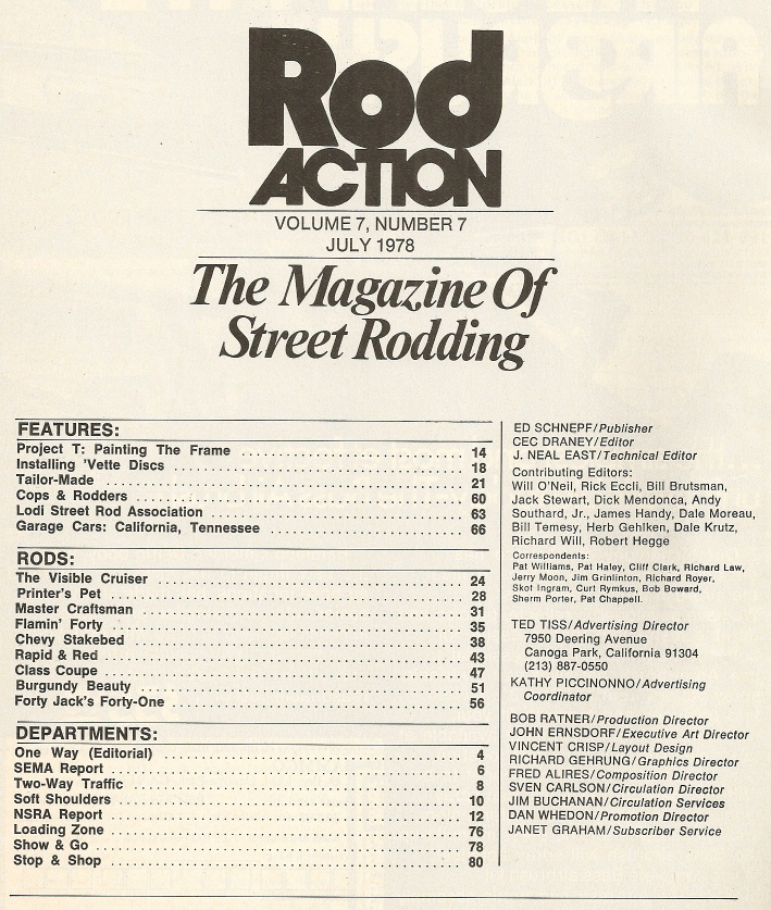 Reviews ROD ACTION 1978 JULY - FRAME PAINT, VETTE DISCS, CUSTOM MADE AXLES, LODI