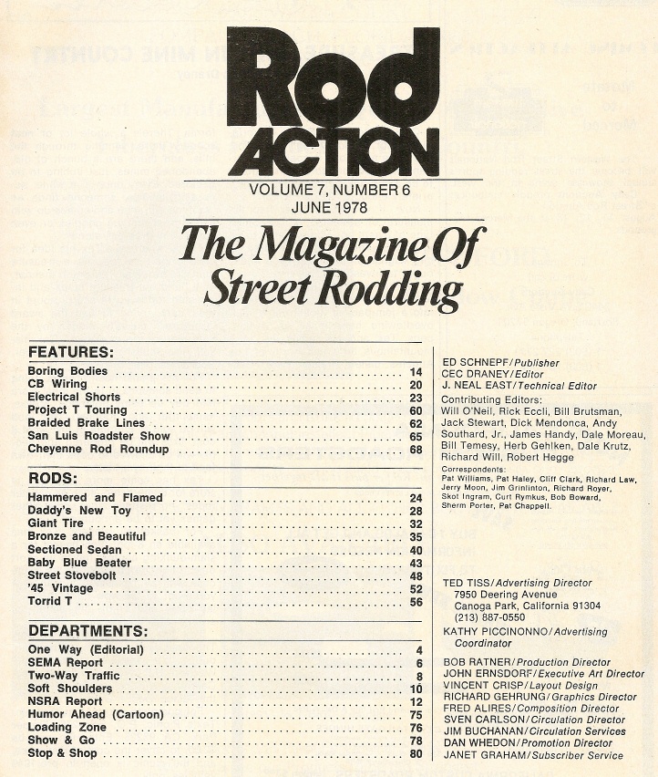 Reviews ROD ACTION 1978 JUNE - FIBERGLASS BODIES MADE, ELECTRICAL TIPS, JAG REARENDS