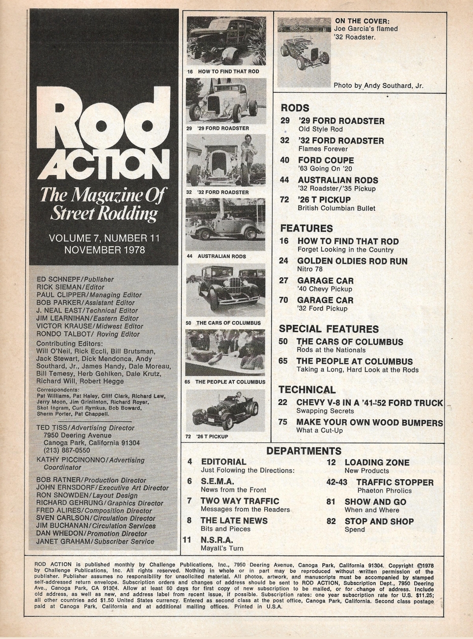 Reviews ROD ACTION 1978 NOV - WOOD BUMPERS, PUT A CHEVY INTO A 41-42 FORD, FINDING RODS