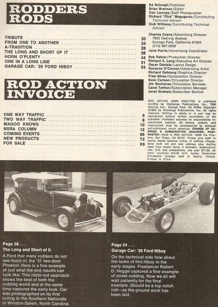 Reviews ROD ACTION 1980 DEC - CUSTOM MODEL A TOPS, CUSTOM '28 FORD HI-BOY FRAME