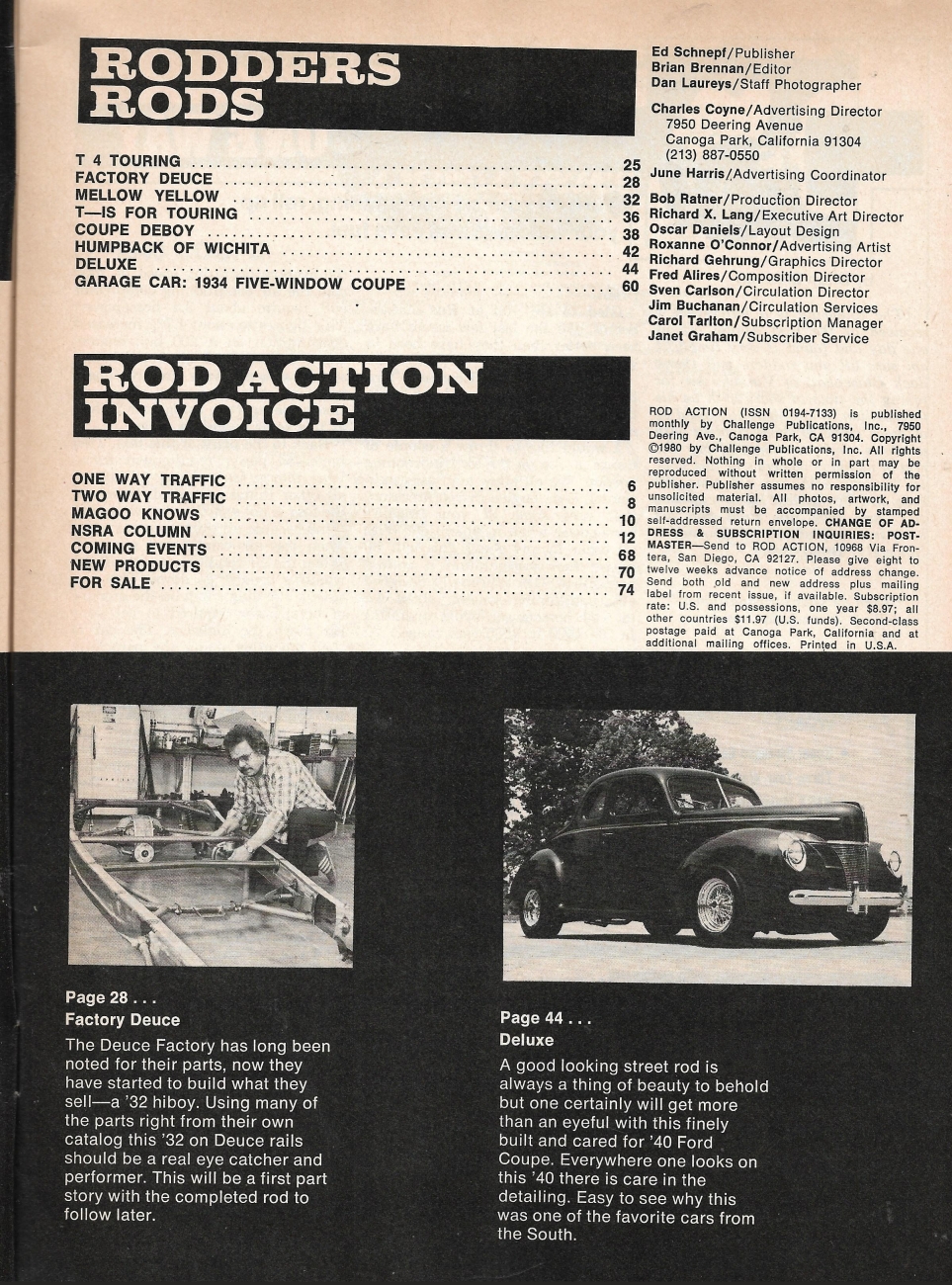 Reviews ROD ACTION 1980 OCT - '32 FRAMES, WIRING, MELLOW YELLOW, COUPE DEBOY*