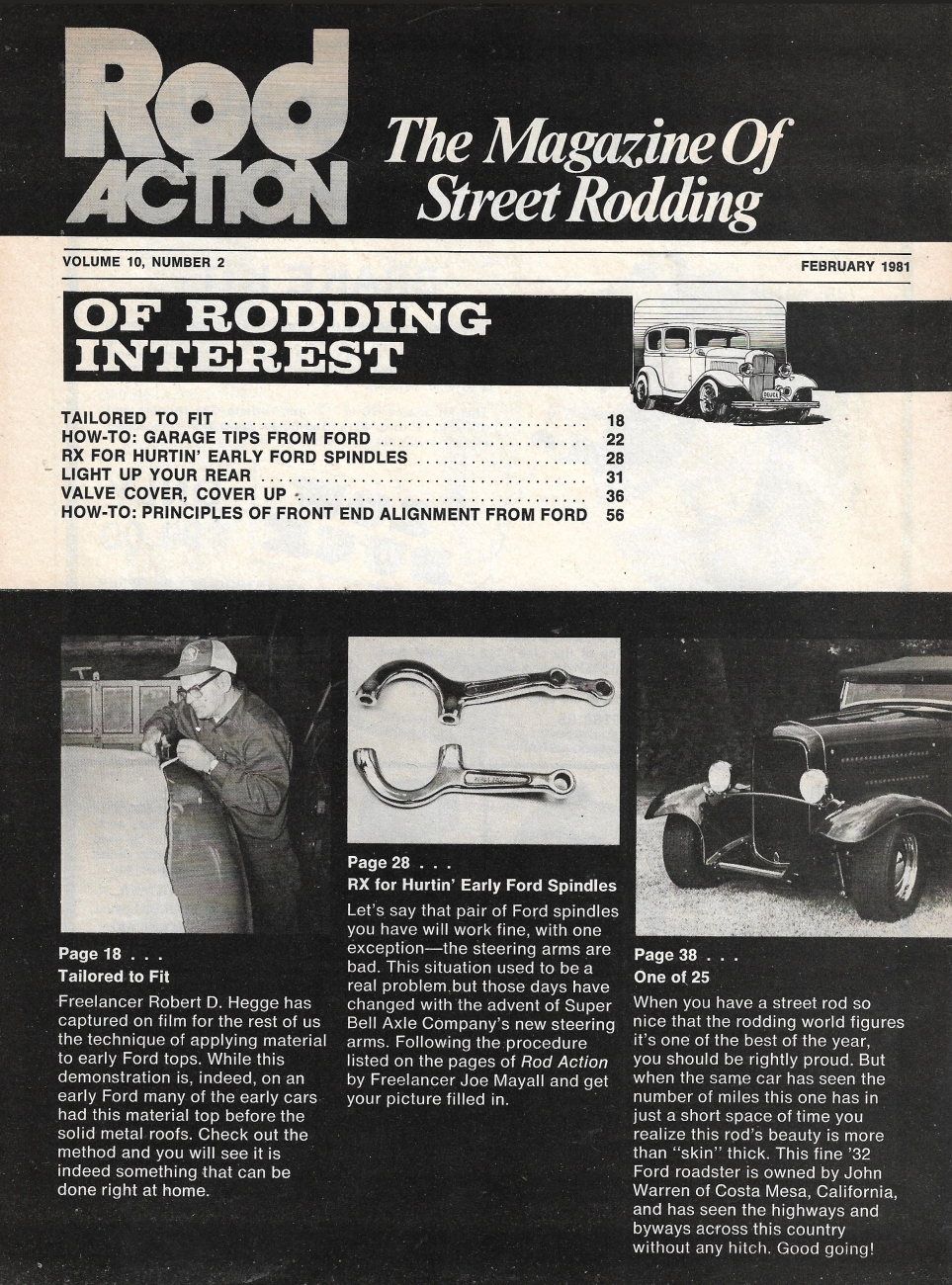 Reviews ROD ACTION 1981 FEB - GARAGE TIPS, FRONT END ALIGN, REUPHOLSTERING FORD TOPS