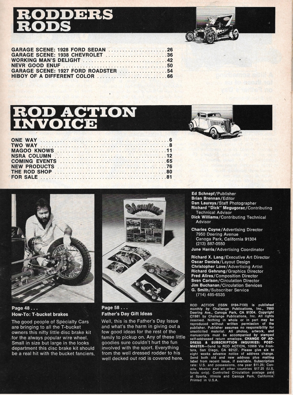 Reviews ROD ACTION 1981 JUNE - ROADSTER-COUPE, T BUCKET BRAKES, TURN SIGNALS