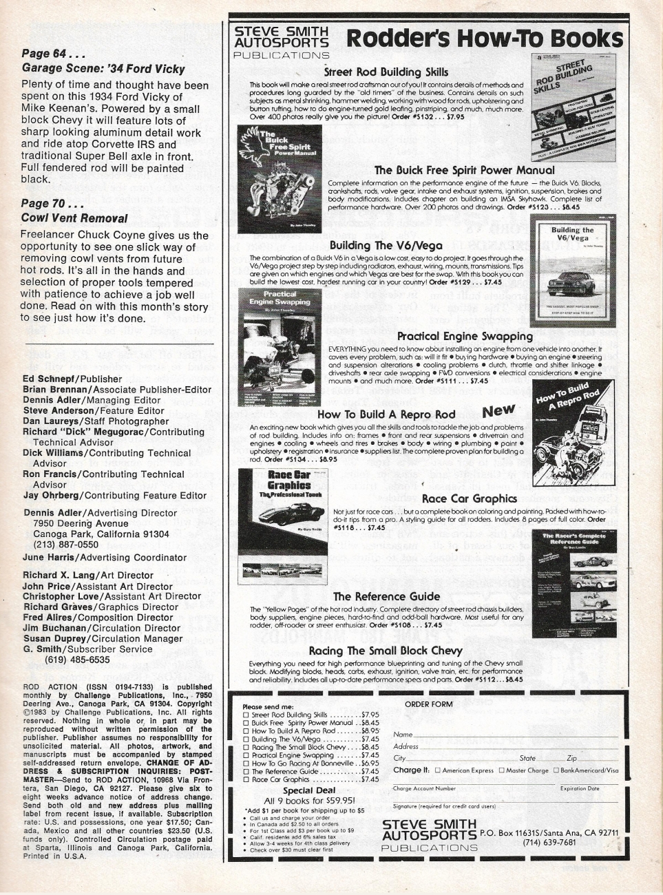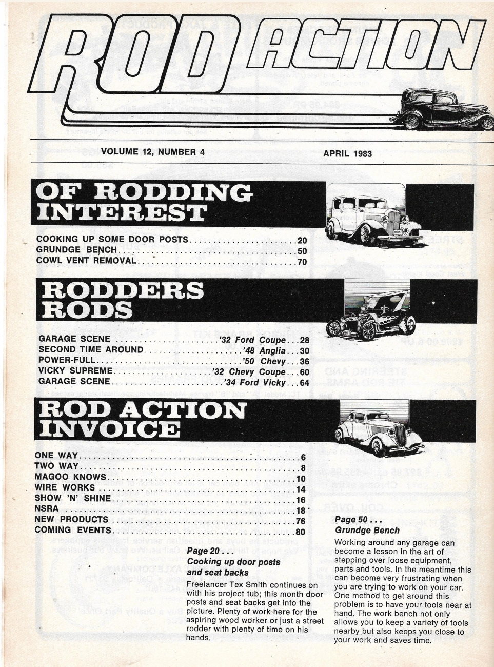 Reviews ROD ACTION 1983 APR - WOOD WORKING DOOR SUPPORTS & SEATS, REMOVING COWL VENTS