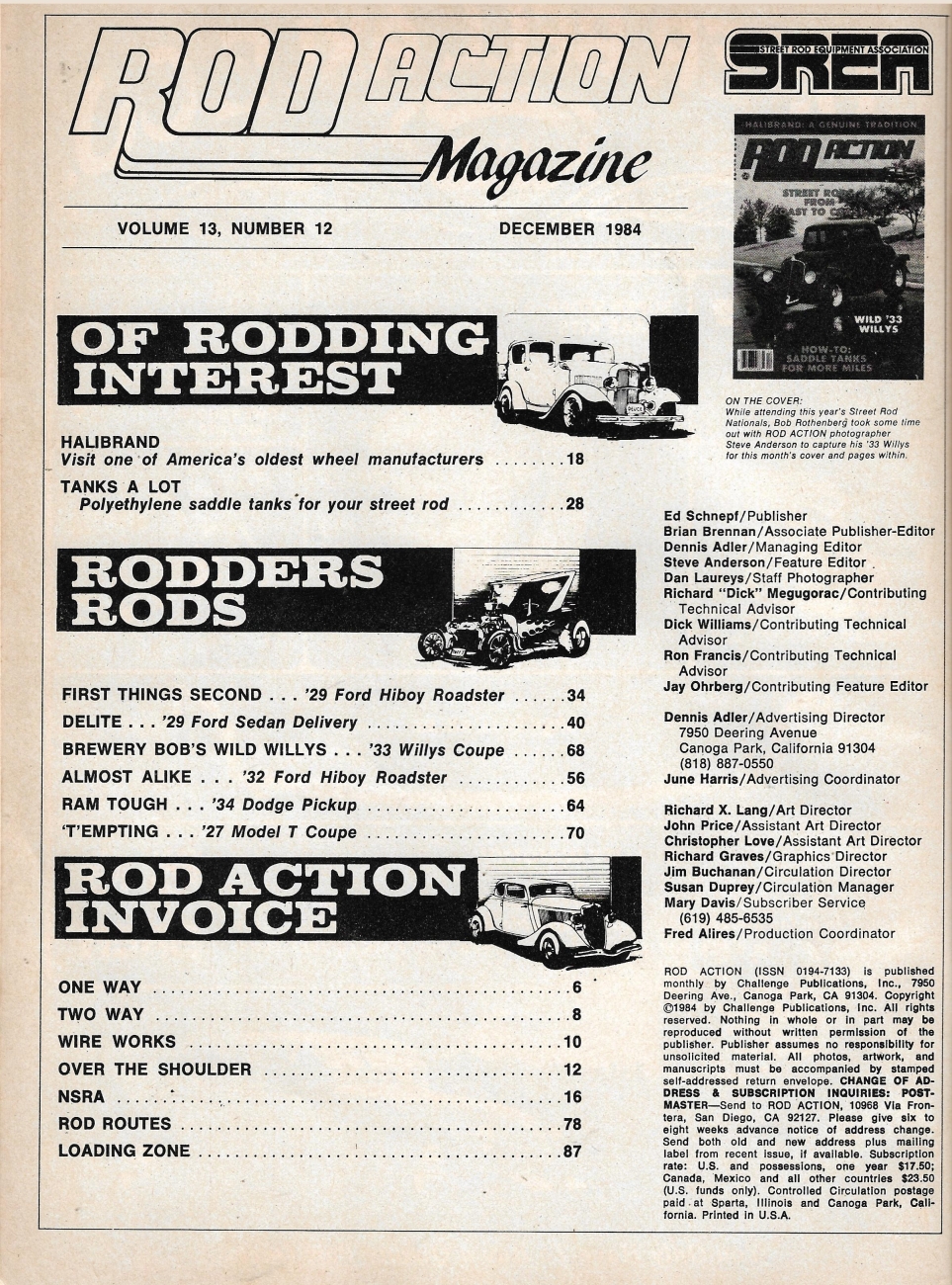 Reviews ROD ACTION 1984 DEC - HOW-2 SADDLE TANKS,'33 WILLYS, HALIBRAND, '34 DODGE PU