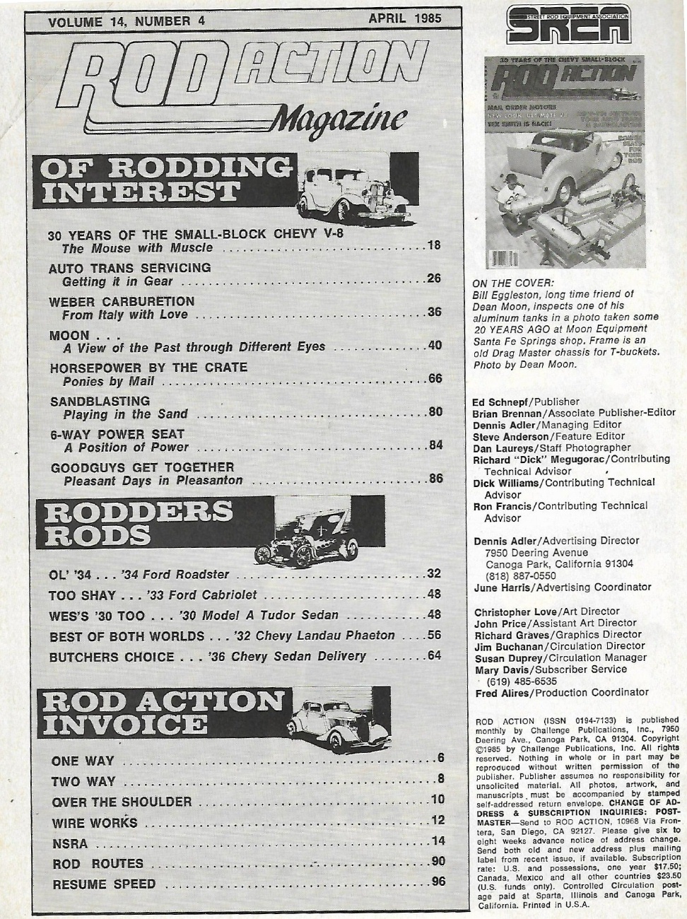 Reviews ROD ACTION 1985 APR - ULTIMATE V8, TEX SMITH, POWER SEATS, SANDBLASTING*