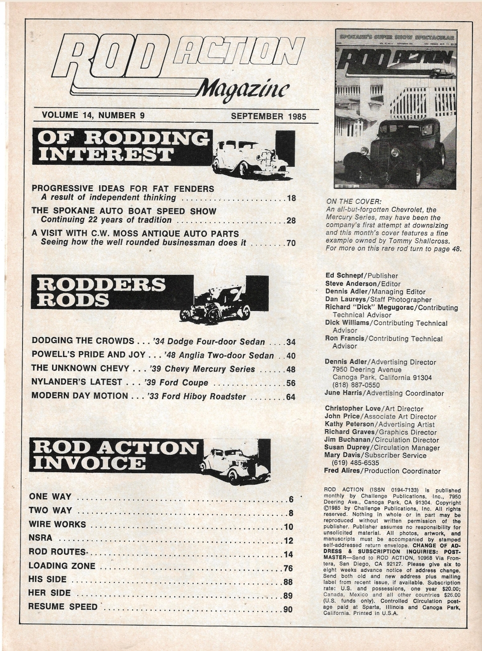 Reviews ROD ACTION 1985 SEPT - AUTO BOAT SPEED SHOW, '34 DODGE 4-DOOR, '48 ANGLIA