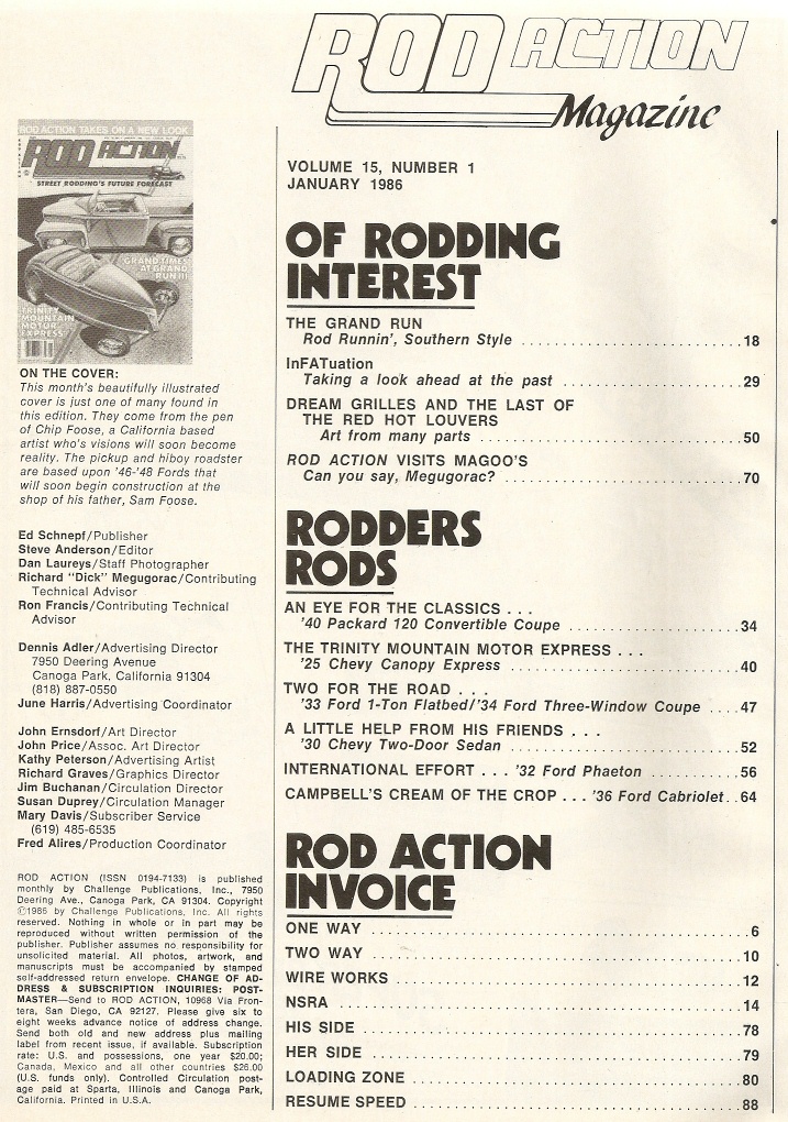 Reviews ROD ACTION 1986 JAN - MAGOO'S, GRAND RUN PEGEON FORGE, FOOSE-N-FOOSE