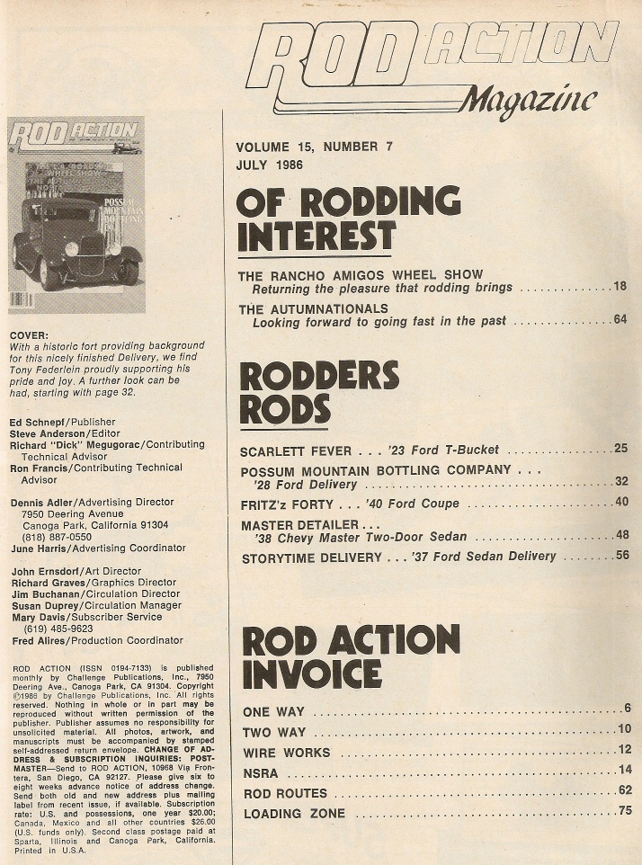 Reviews ROD ACTION 1986 JULY - POSSUM MOUNTAIN DEUCE DELIVERY, BAYLANDS DRAGS