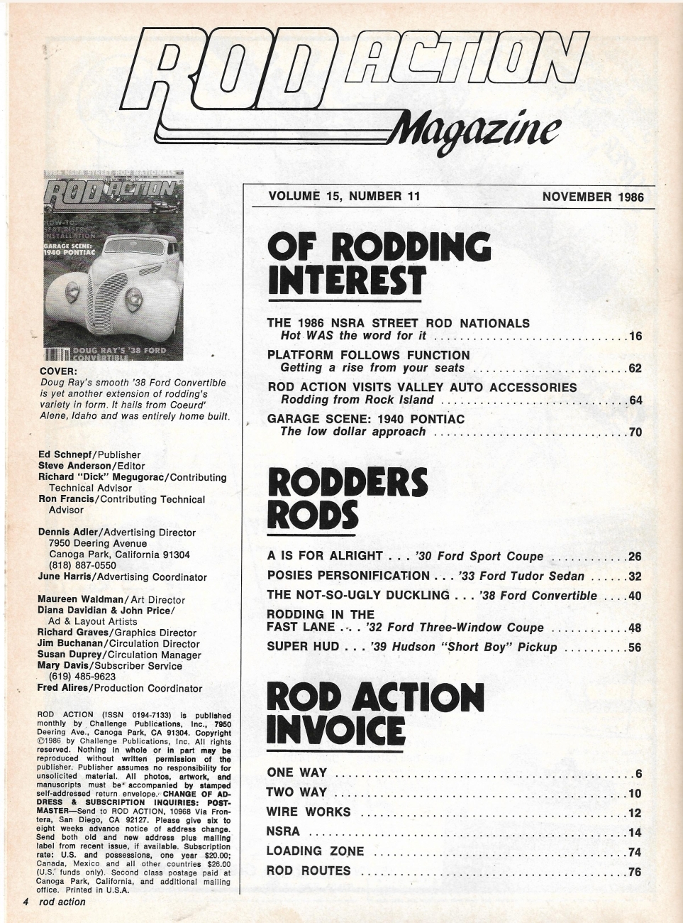 Reviews ROD ACTION 1986 NOV - SEAT RISER INSTALL, '40 PONTIAC, '38 FORD CONV*