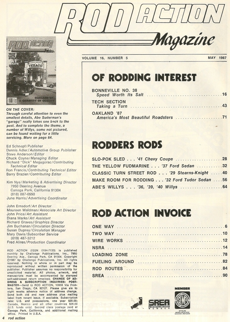 Reviews ROD ACTION 1987 MAY - BONNEVILLE, '29 STEARNS-KNIGHT, 33 FORD STEERING UPDATE