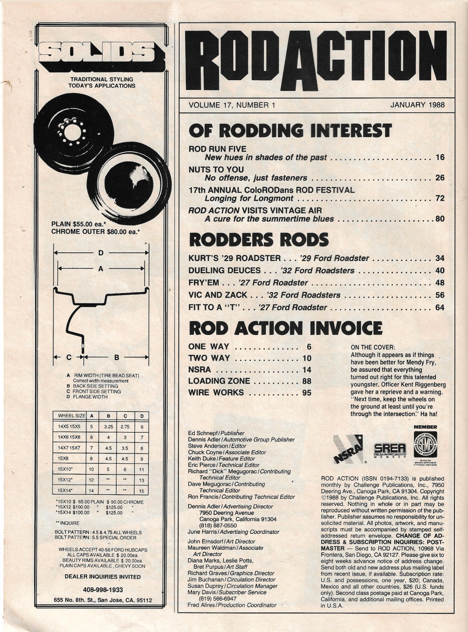 Reviews ROD ACTION 1988 JAN - EDELBROCK'S DEUCE, FERRARI HIBOY, ROADSTER SPECIAL*