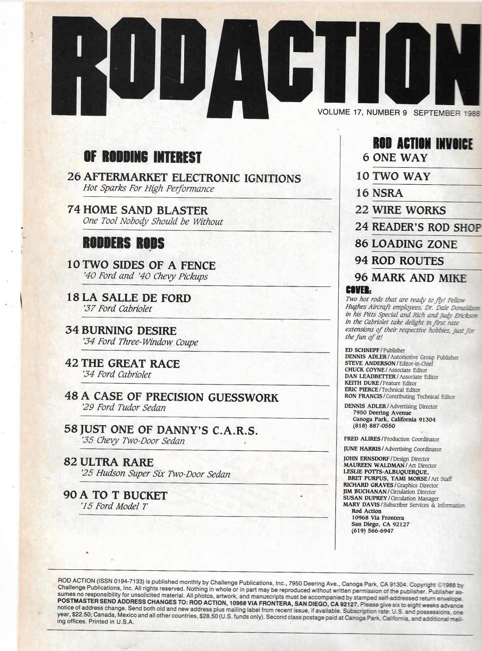 Reviews ROD ACTION 1988 SEPT - SAND BLASTERS, IGNITIONS, '34 CABRIOLET, '25 HUDSON