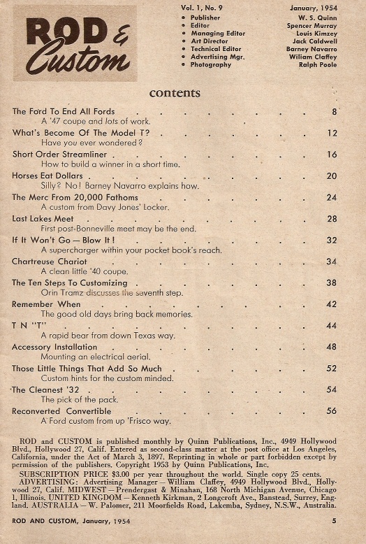 ROD & CUSTOM 1954 JAN -This is a small issue that measures 5 1/4" X 8 ". There is no description for this magazine yet. See picture of cover and contents below for details. ![]() ![]() |