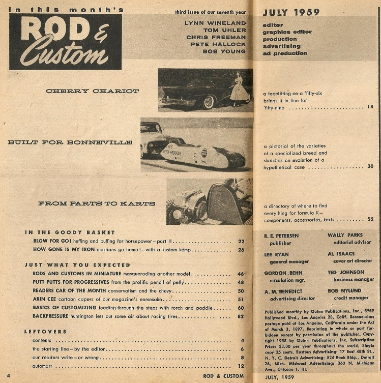 Reviews ROD & CUSTOM 1959 JULY - BONNEVILLE SPEED TRIALS, INS & OUTS OF LEADING