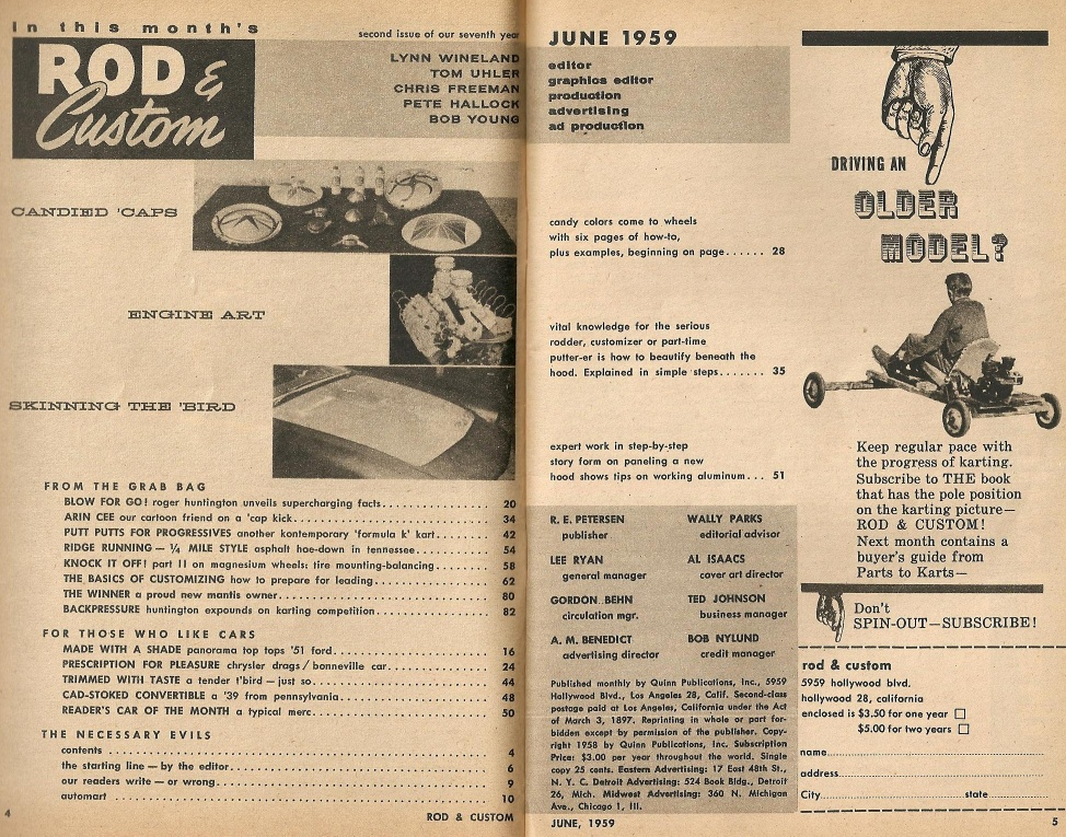 Reviews ROD & CUSTOM 1959 JUNE - CANDY APPLE HUPCAPS, METAL PREP FOR LEADING, BLOWN