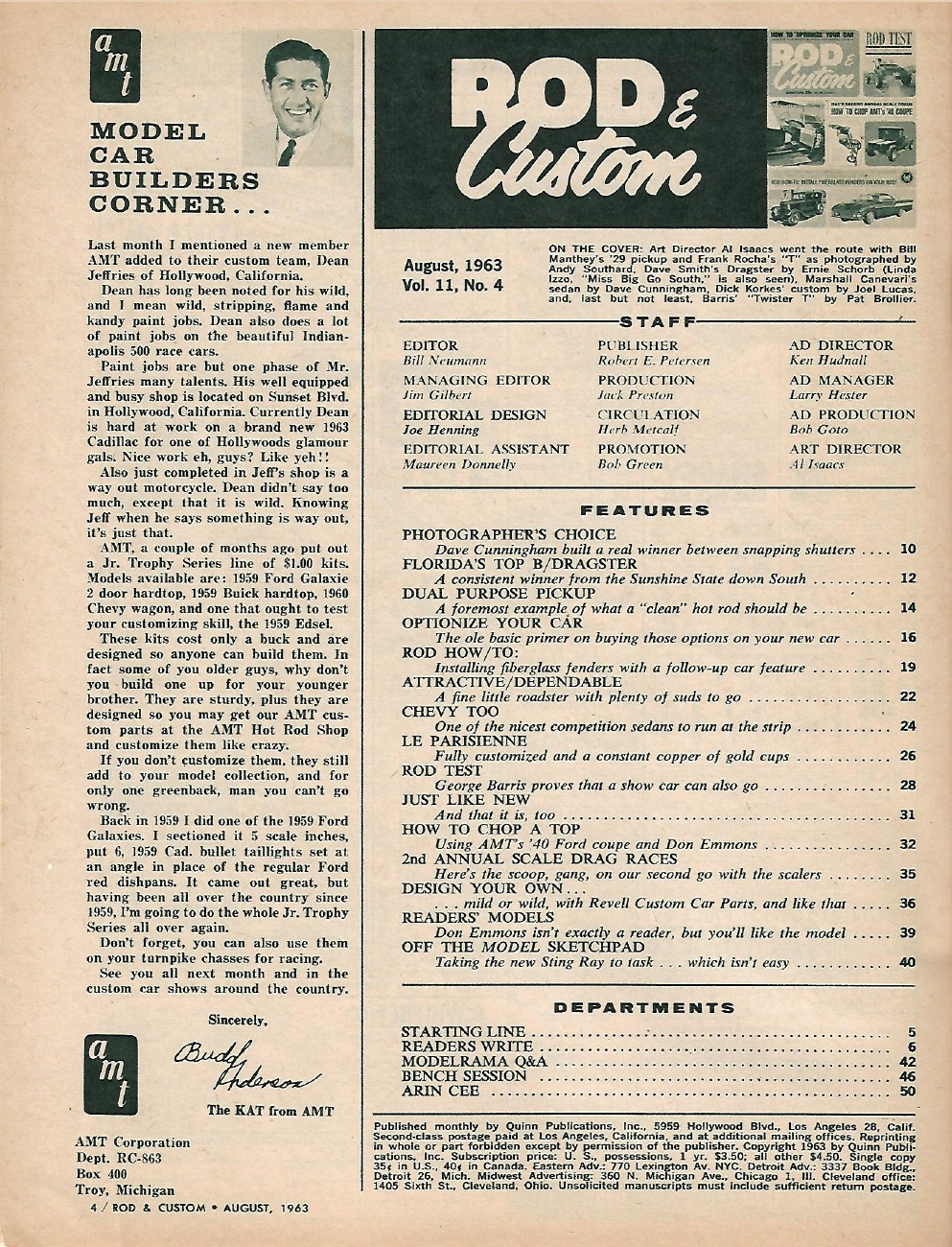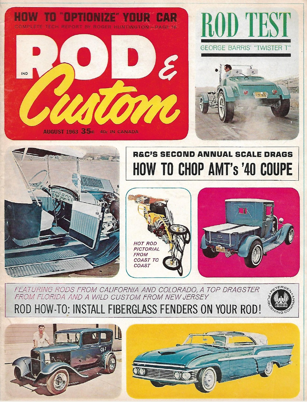 Reviews ROD & CUSTOM 1963 AUG - FIBERGLASS FENDERS INSTALLED, BARRIS TWISTER T TESTED