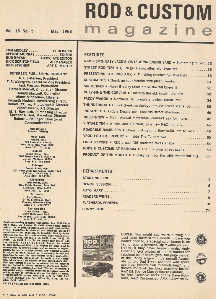 Reviews ROD & CUSTOM 1968 MAY - AMX CUSTOM, RACING RAMBLERS, MOUSE CORVAIR