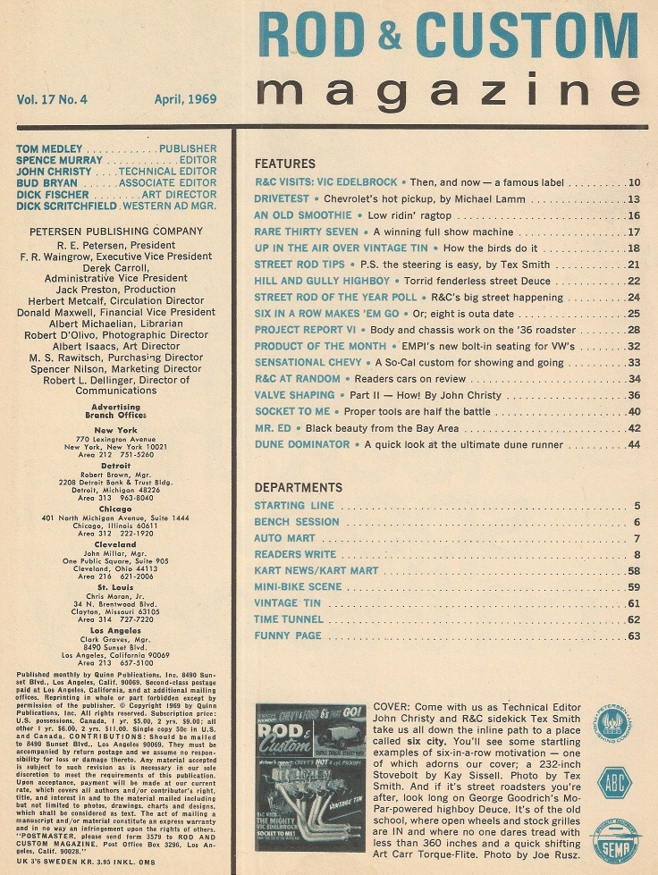 Reviews ROD & CUSTOM 1969 APR - CHEVY 4 POWER, VALVE SHAPING, VIC EDELBROCK