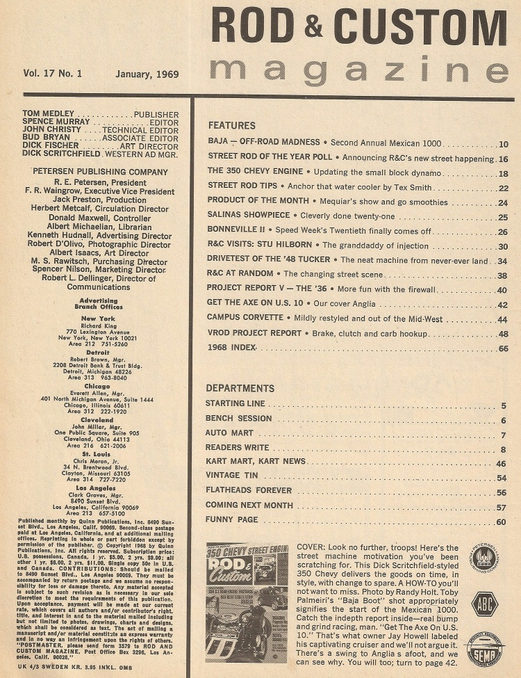 Reviews ROD & CUSTOM 1969 JAN - BAJA, HOT MOUSE BUILT, BONNEVILLE, TUCKER TESTED