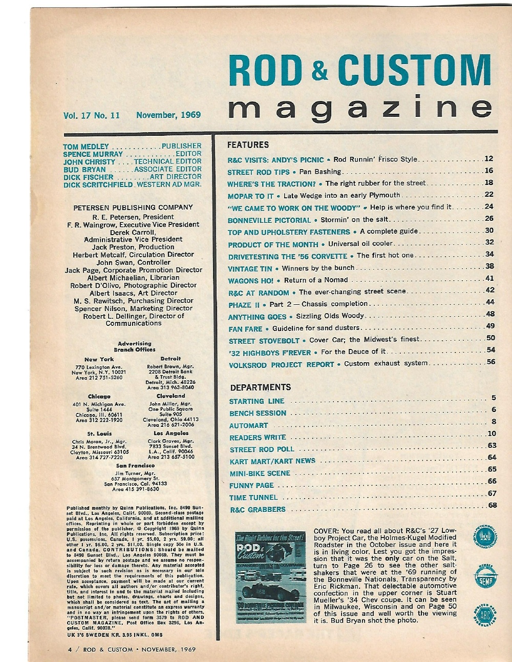 Reviews ROD & CUSTOM 1969 NOV - BONNEVILLE SPECIAL, MOPAR WEDGE SWAP, V8 CORVETTE TESTED
