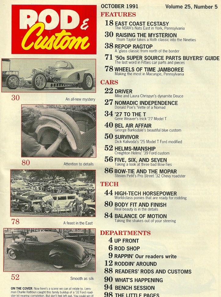 Reviews ROD & CUSTOM 1991 OCT - BARRIS' MYSTERION, CVER CAR PREPPED & PAINTED
