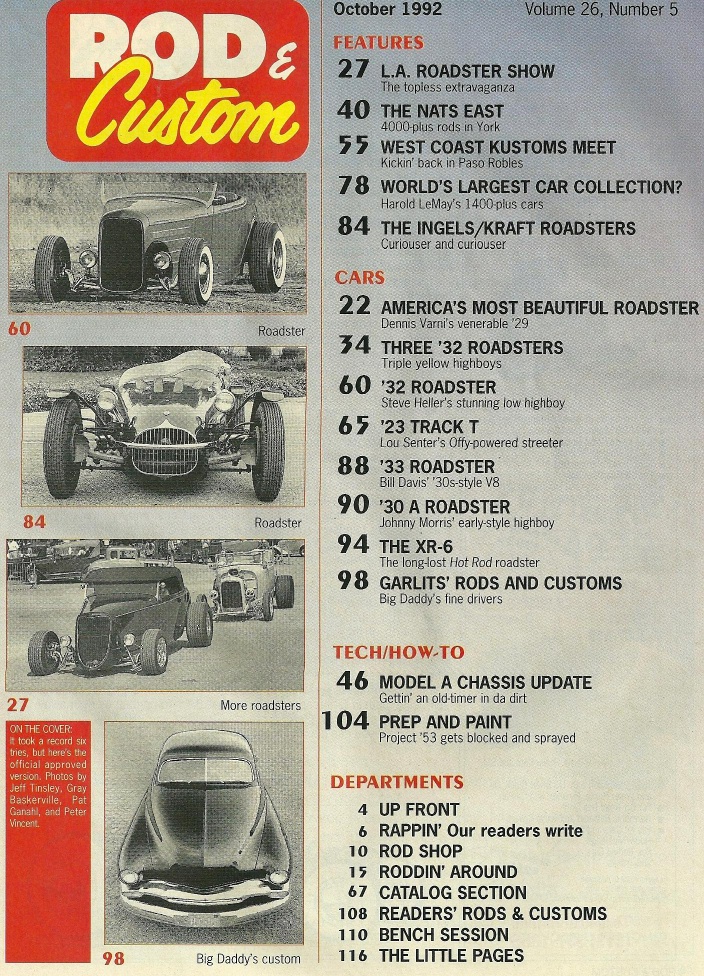 ROD & CUSTOM 1992 OCT -There is no description for this magazine yet. See picture of cover and contents below for details. ![]() ![]()