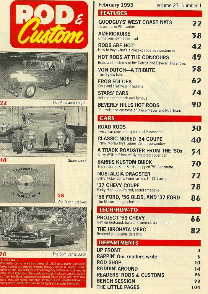 Reviews ROD & CUSTOM 1993 FEB - A SPECIAL TRIBUTE TO VON DUTCH, BARRIS 1950 BUICK*